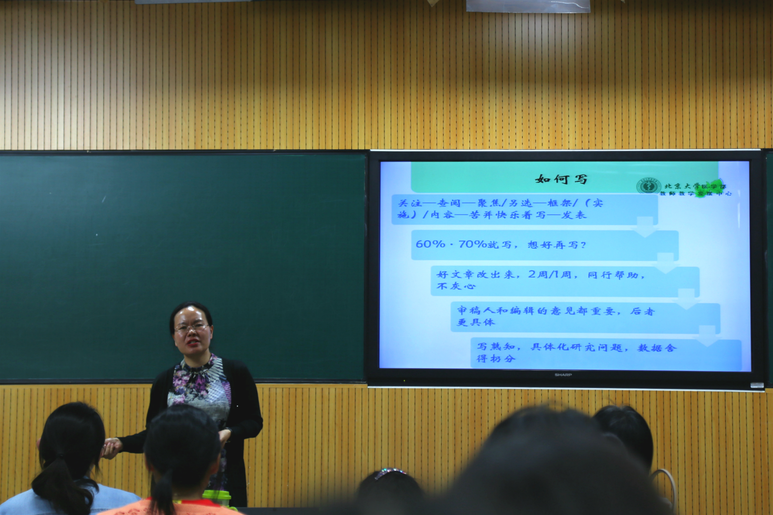 2018年5月24日于逸夫楼507室,《中华医学教育杂志》编辑部主任殷晓丽研究员进行了“医学教育研究论文的选题撰写与投稿”的专题讲座,来自医学部各学院(部)、临床医院、教学医院的60余位教师及研究生助教参加了本次活动。