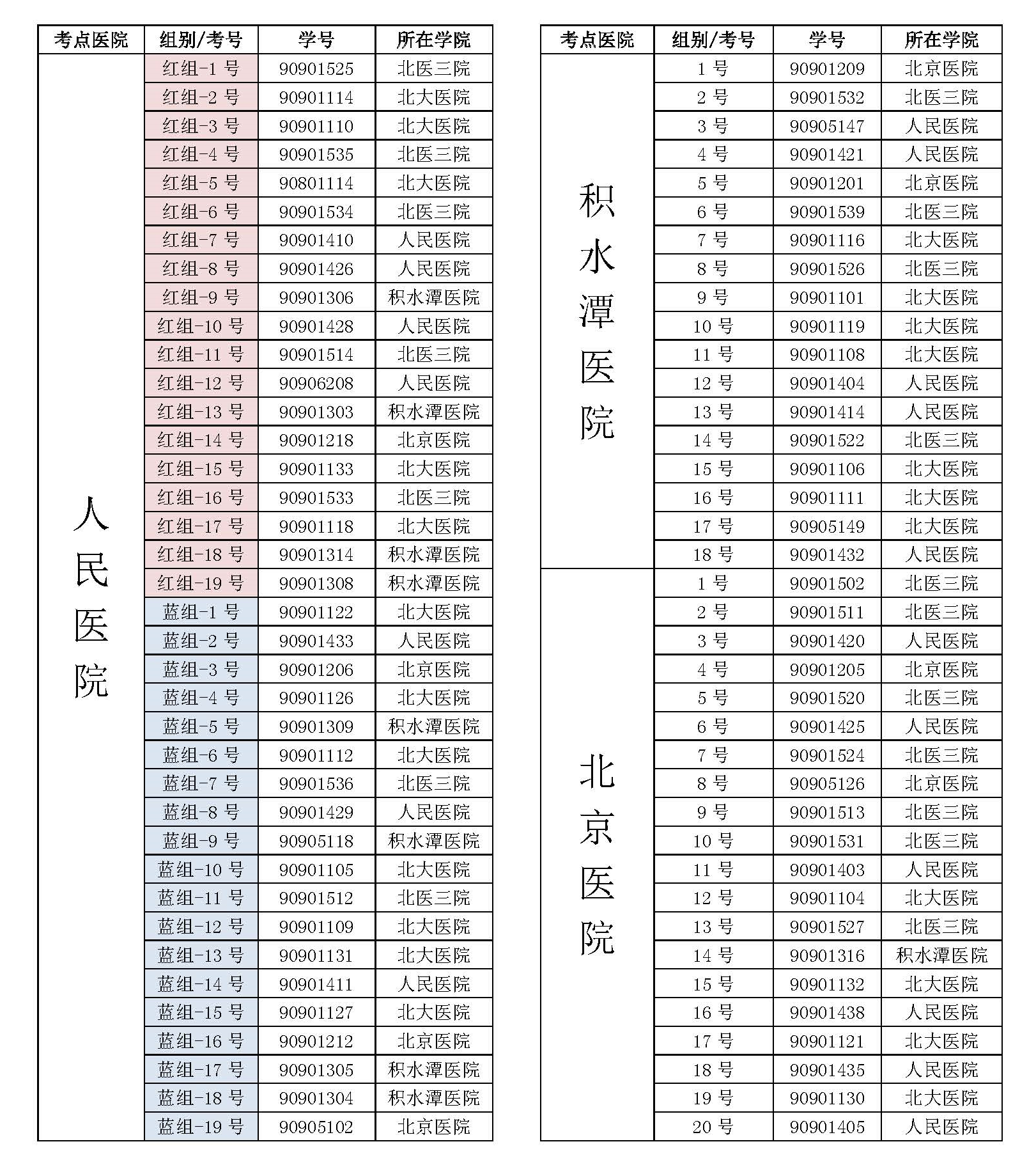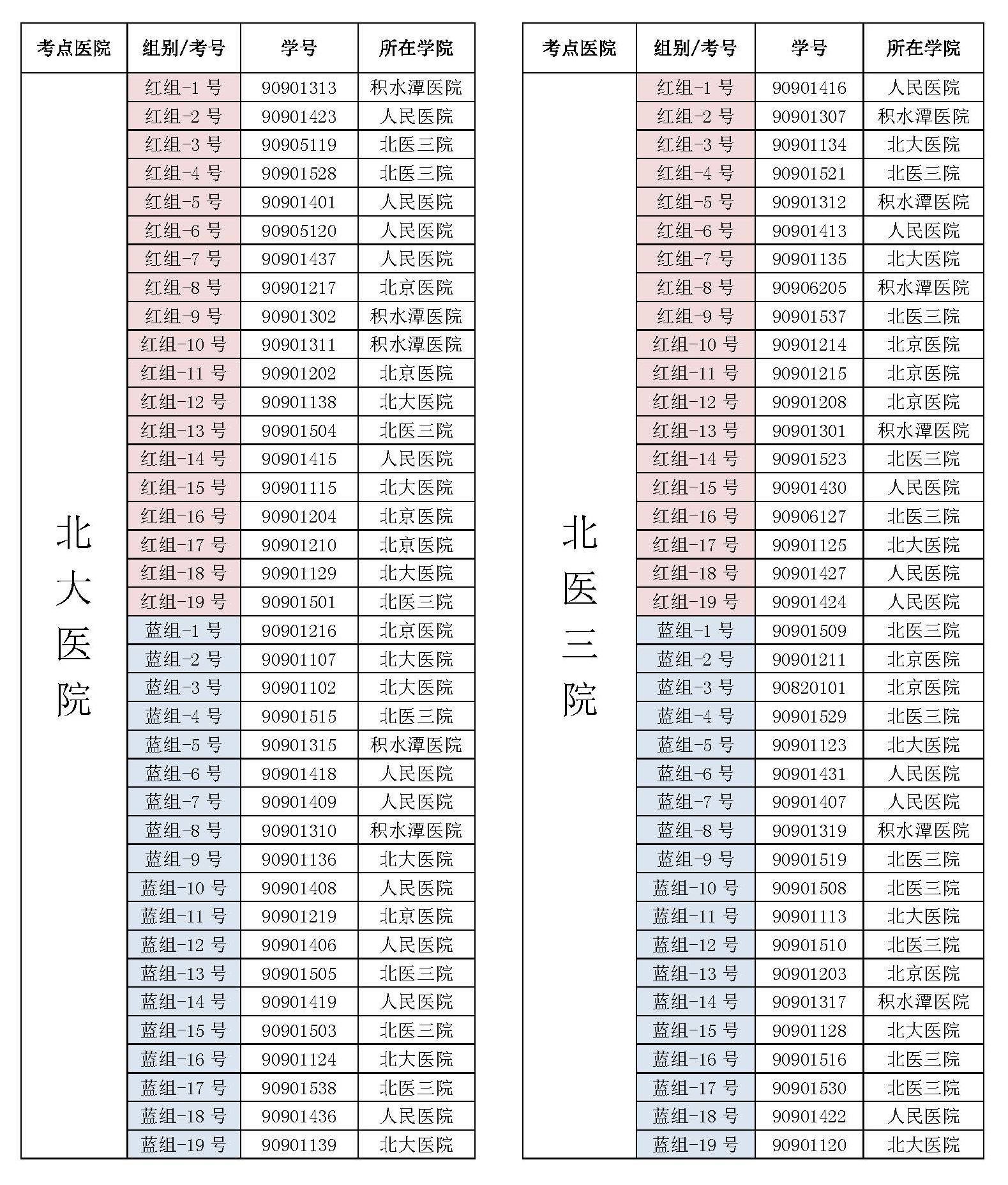 报到地点:北医三院教学科研楼一层大厅(红组)、北医三院临床技能中心(教学科研楼南侧小楼)(蓝组)