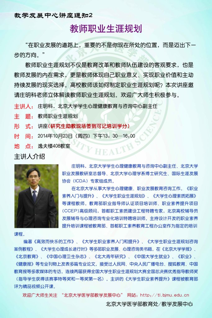 欢迎关注“北京大学医学部教学发展中心(Center for Excellence in Teaching and Learning. PUHSC)”网站:http://tl.bjmu.edu.cn