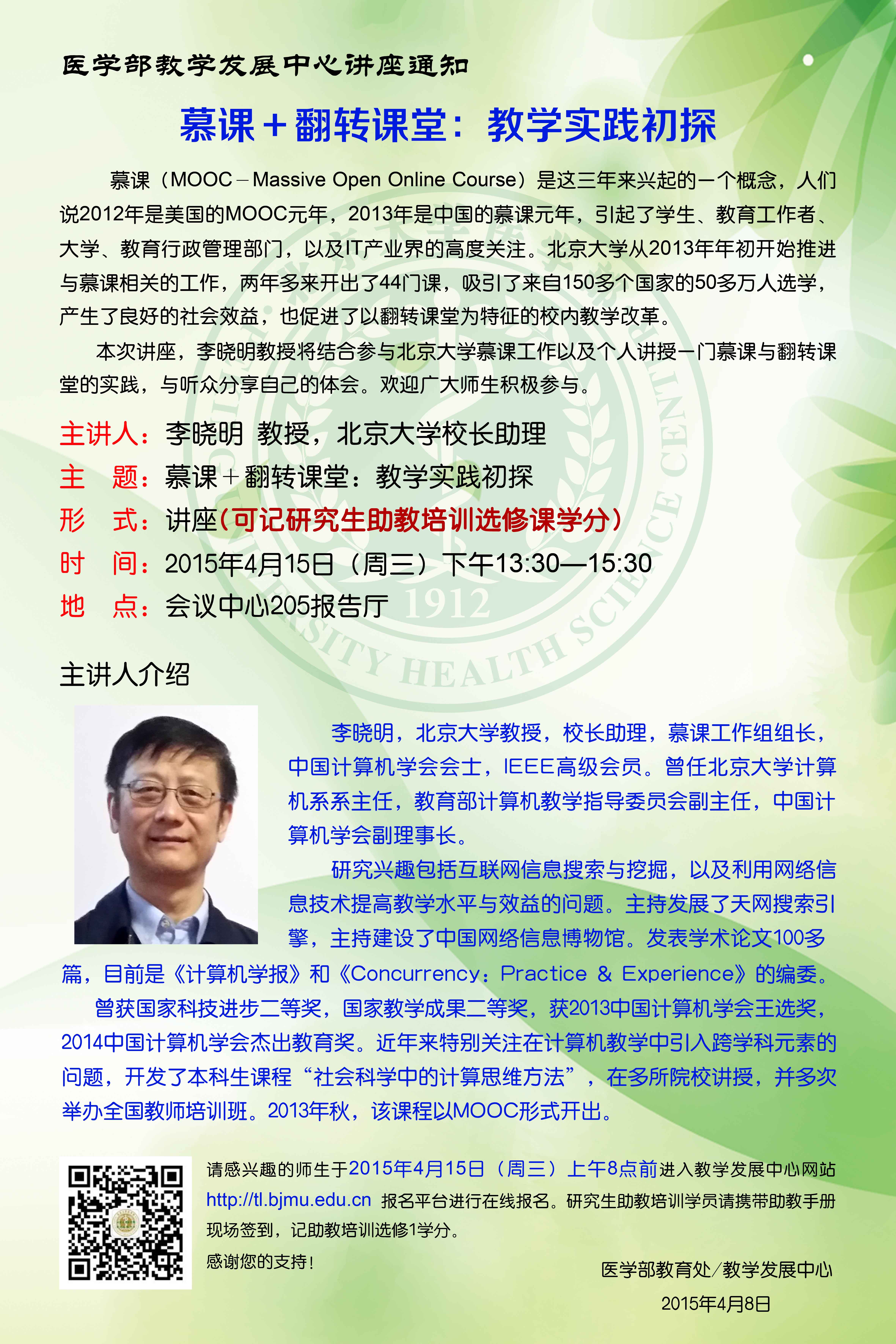 【讲座通知】慕课+翻转课堂:教学实践初探