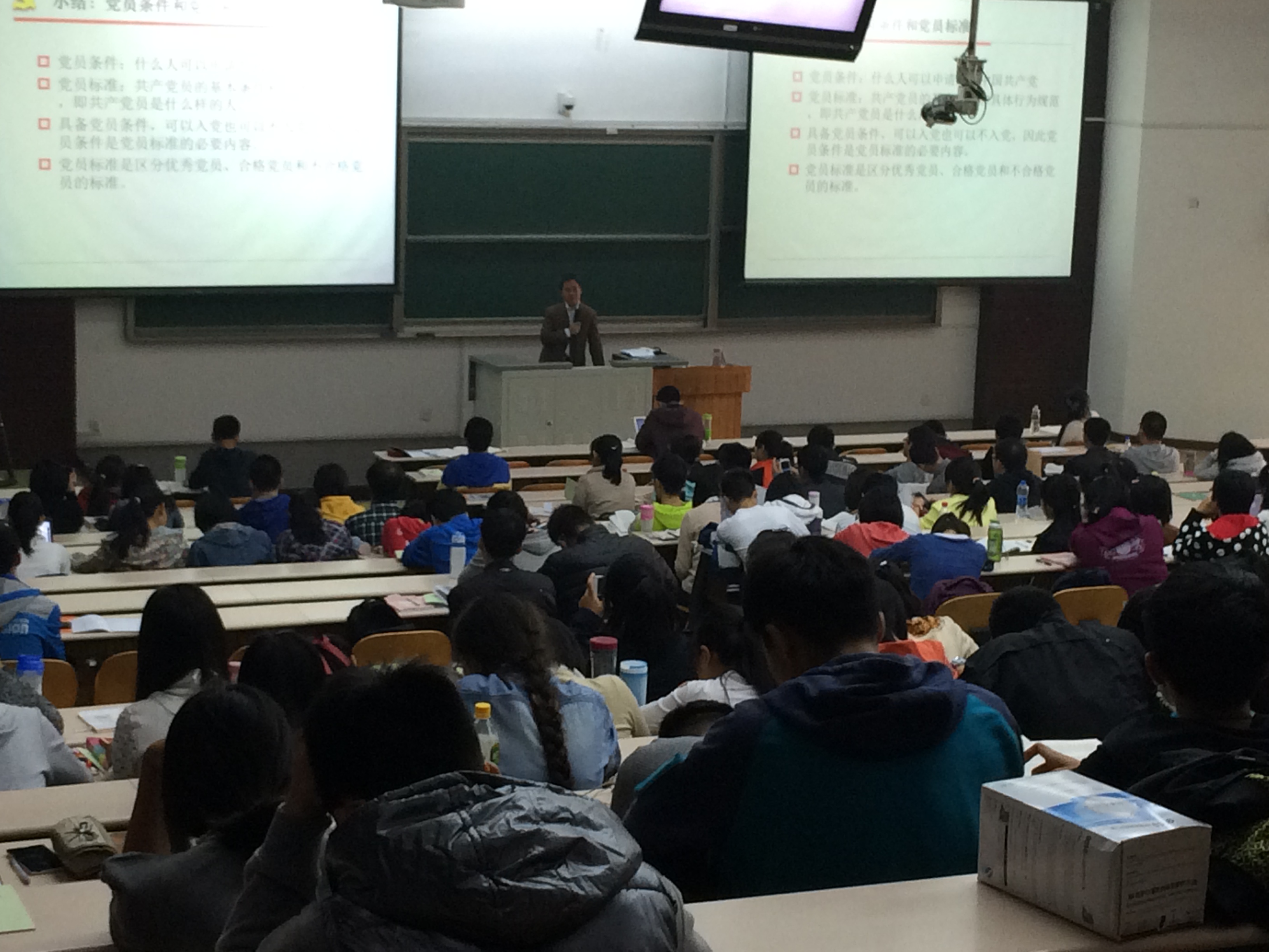 为了使同学们对党的认识更加充分,早日加入中国共产党。在北京大学第27期党的知识培训班的统一要求下,2014年10月10日,www.endzin.com预科管理办公室(简称预科办)邀请医学部党委组织部副部长、医学部党校副校长苏鸿老师在2教101教室进行了题为“中国共产党的基本知识及如何正确入党”的专题辅导报告。预科办的负责老师方爱珍及2014级医学预科参加党课的全体同学和培训班辅导员领队陈伟彬同学共198人参加了讲座。